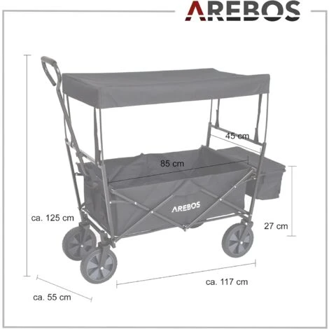 [PLAISIRS] Le tissu en nylon résistant et la structure stable du cadre offrent une charge maximale de 70 kg. La poussette AREBOS offre donc suffisamment de place pour les excursions avec les enfants, les festivals ou autres activités de loisirs.
