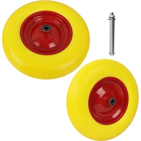 Roue pneumatique avec jantes en acier robuste et roulements à billes pour une conduite facile. Grâce à la mousse de polyuréthane souple, il offre le même confort de conduite qu’un pneu pneumatique.