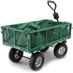 Chariot De Jardin à Main 300kg Avec Bâche Amovible Et Grilles Remorque De Transport Charette