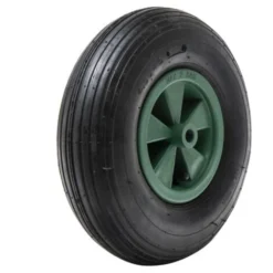 – Ø 400 mm, montée sur roulement à billes, jante métal flasque aspect chrome, pneu cranté longue durée.