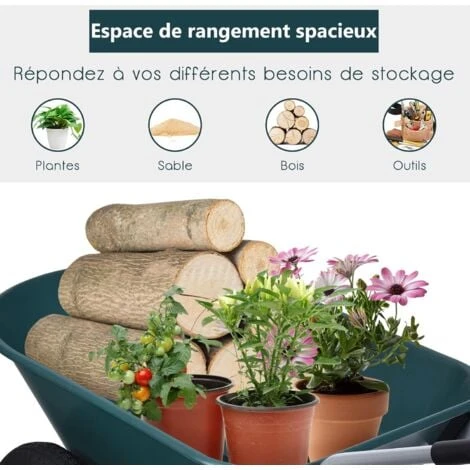 - 【Grande capacité】La brouette est profonde et facile à vider, d’un volume de 141 litres pour une capacité de transport de 150 kg. Elle est renforcée pour s’assurer que la cuve ne se déforme pas et ne se casse pas au fil du temps.