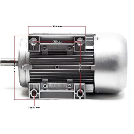 | Dimensions | Longueur de l’arbre : 48 mm Diamètre de l’arbre : 19 mm Espacement des trous : 145 x 125 mm Taille du moteur : 330 x 255 x 175 mm Traversée de câble : Ø 16,5 mm Cosses de câble : Ø 4 mm |