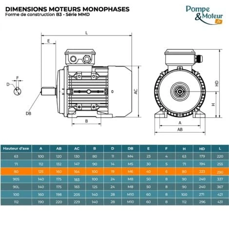 - Diamètre d’arbre : 19mm, Hauteur d’axe 80mm.