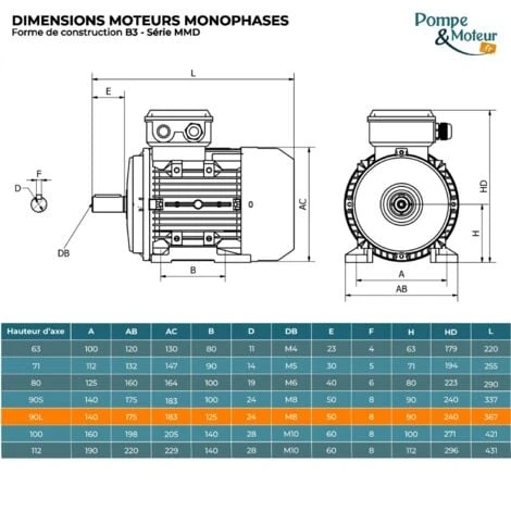 - Diamètre d’arbre : 24mm, Hauteur d’axe 90mm.