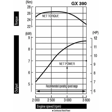 - Technologie OHV puissant refroidissement par air d’une cylindrée de 389 cm3 développant 8700W à 3600 tours mn.