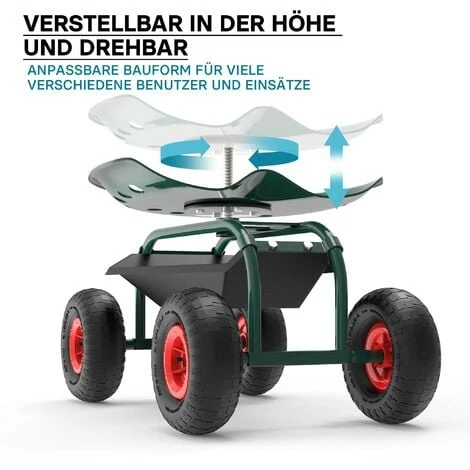 Siège de jardin sur larges roues Charge 150kg max. Chariot pour outils