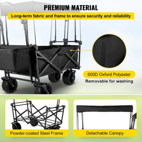 Cadre en Acier de Qualité Supérieure : Notre chariot pliable possède un cadre en acier haute résistance avec un tissu PE oxford 600D amovible, ce qui signifie qu’il peut charger tout ce que vous voulez pour un pique-nique en plein air. De plus, l’auvent amovible vous permet de ne pas vous inquiéter de la météo.