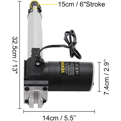 - 【QUALITE SUPERIEURE】 – Type : actionneur electrique robuste ; longueur de course : 150 mm/6 po ; vitesse de deplacement : 5 mm/s ; puissance : DC(courant continu) 12 V ; interrupteur de fin de course : integre ; cet actionneur lineaire comprend un tube en alliage dealuminium de φ 24 mm deepaisseur et la construction metallique est pour la capacite de charge fonctionnelle et la durabilite. Il est robuste, bien scelle et a un niveau de protection IP44. Remarque : Nous recommandons deutiliser notre produit avec une alimentation electrique ayant une tension de sortie de 12 V DC et un courant de sortie de 8 ou 9 A.